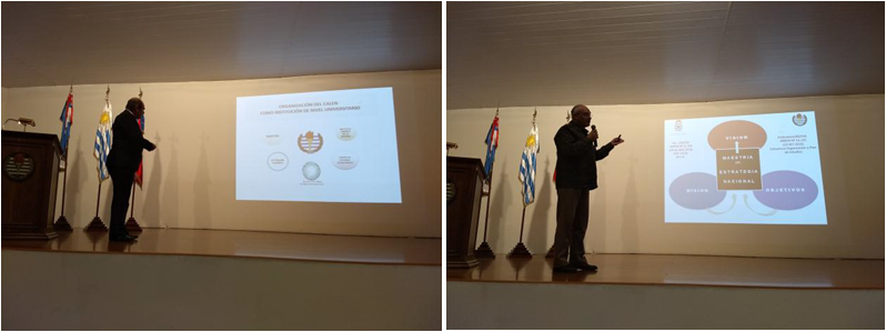 Já o Cel. WILLIAN, Diretor de Extensão Acadêmica, falou das atividades complementares executadas pela instituição na busca pela difusão do pensamento estratégico entre a população uruguaia. Isto se dá por meio de diversos cursos, seminários, conferências e mesas redondas, todas as atividades gratuitas, que são oferecidos anualmente para o público em geral.