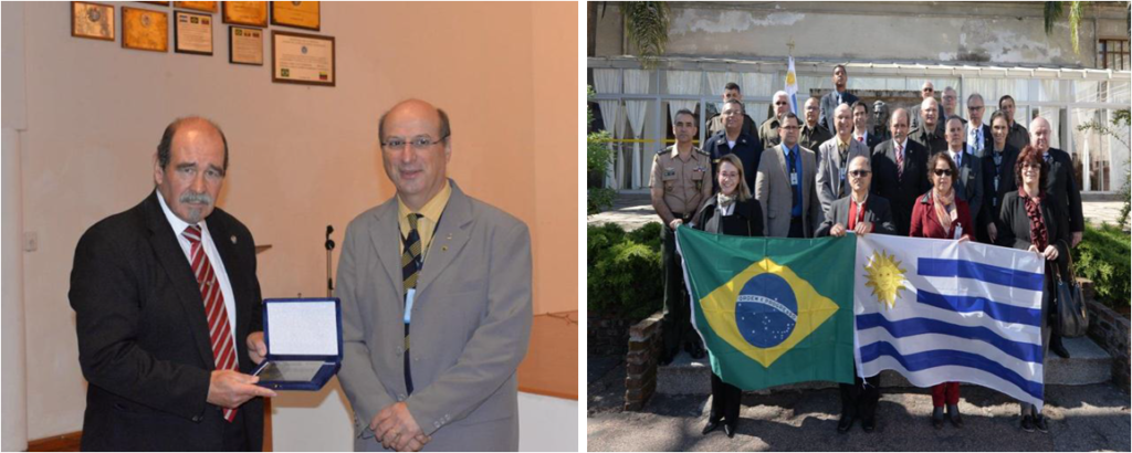 A atividade planejada para o turno da tarde foi uma visita a Embaixada do Brasil. Na Embaixada fomos acompanhados do Adido Naval e de Defesa, CMG RULFF, do Adido Militar ELOY e do Adido Aeronáutico Coronel (Aviador) Reinaldo FEIJÓ Pinheiro. Na ocasião foi destacado não só o clima de amizade existente entre os povos e os governos. Mas também sobre a parceria econômica, que se fortaleceu sobre o prisma da criação do Mercado Comum do Sul – MERCOSUL. Da parte dos adidos militares, foi feito uma pequena consideração sobre as suas respectivas áreas profissionais. O que mostra que esta integração é ampla em todos os sentidos. Acompanhando, mas sem tomar parte no evento, esteve o Sr. César Alejandro García Caui, responsável pelo setor de Imprensa, cultura e cooperação Acadêmica da embaixada brasileira no Uruguai.