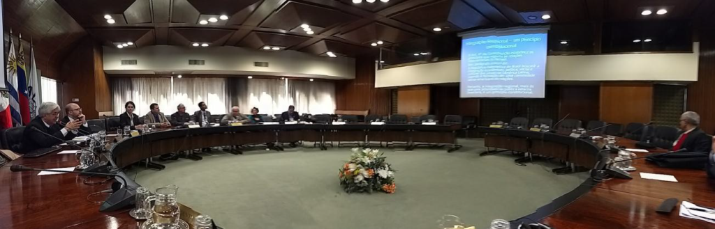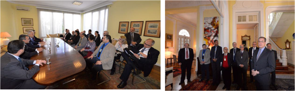 Na manhã de quinta-feira (04/OUT) a comitiva se dirigiu a sede da Associação Latino-Americana de Integração – ALADI. Localizada na região central da cidade, próximo a orla do Rio da Prata. Quem nos recebeu foi o Sr. George Ney de Souza Fernandes, Ministro Conselheiro da Delegação Brasileira junto a ALADI e ao MERCOSUL. Que ali representava o titular do cargo, o embaixador Sr. Bruno de Rísios Bath.