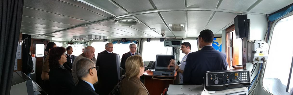 A visita ao 5º Distrito Naval de Rio Grande, da Marinha do Brasil, teve início com a visita ao Navio-Patrulha ―Benevente‖ (P61), pertencente ao Grupamento de Patrulha Naval do Sul, unidade subordinada ao Comando do 5º Distrito Naval. Nesta ocasião a delegação foi recebida pelo comandante, o Capitão de Corveta (CC) MARNE. Que não só apresentou o navio, como explicou o contexto no qual o mesmo é empregado, em diversos tipos de missões. Sejam elas de patrulha militar, de apoio a atividades do Instituto Brasileiro do Meio Ambiente e dos Recursos Naturais Renováveis – IBAMA, ou em missões de Busca e Salvamento (SAR).