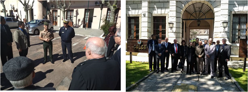 Já no Uruguai, a primeira visita foi ao ― Centro de Altos Estudios Nacionales – CALEN, que fica em um prédio histórico da região central de Montevidéu. Nesta visita, tivemos a companhia do Adido Naval e de Defesa (representa o Ministério da Defesa) o Capitão de Mar e Guerra Jorge José de Moraes RULFF; e do Adido Militar Coronel (Infantaria) ELOY Woellner Junior. A comitiva foi recebida inicialmente pelo Diretor Geral do CALEN, General (R) don Domingo Antonio Montaldo Bertúa, que após as boas vindas apresentou parte de sua equipe técnica. No caminho para o auditório foi feito o registro oficial da visita. Uma foto no pátio da instituição junto ao busto do patriarca da independência e herói nacional, José Gervasio Artigas (1764-1850).