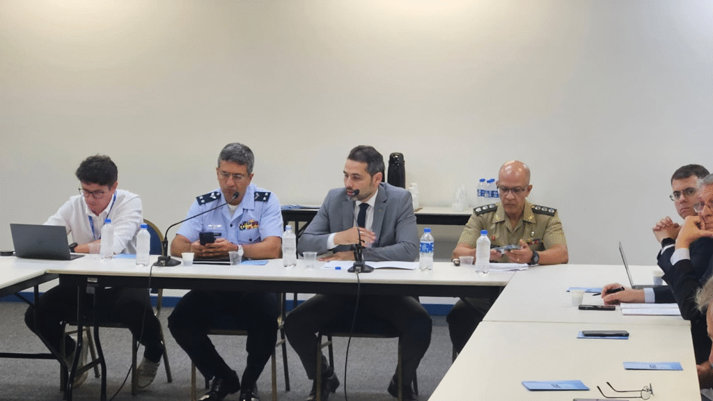 – Apresentação dos Projetos Estratégicos do Ministério de Defesa e ações programadas para 2025, pelo Coronel de Infantaria Adriano de Andrade Pontes, do Departamento de Produtos de Defesa do Ministério da Defesa, sobre ações e oportunidades para às indústrias ligadas à Defesa.