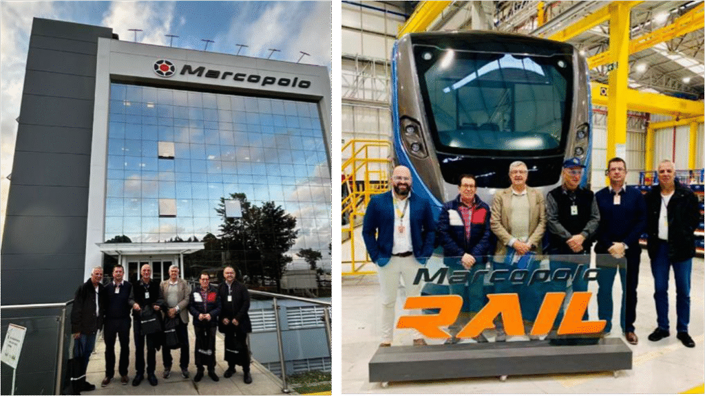 Na empresa Marcopolo, o Cel. Celente e o Cel Petry foram recepcionados pelo Diretor de Operações Industriais Sr. Julio Cesar Wustrow Igansi e Diretores e Adesguianos, do XXV CEPE, do ano de 2019, o Gerente de Excelência Operacional Sr. Daniel Giacomelli e pelo Adesguiano do XXVI do ano de 2023, Sr. André Matté, Gerente de Manufatura que gentilmente apresentaram a empresa e realizaram uma visita técnica.