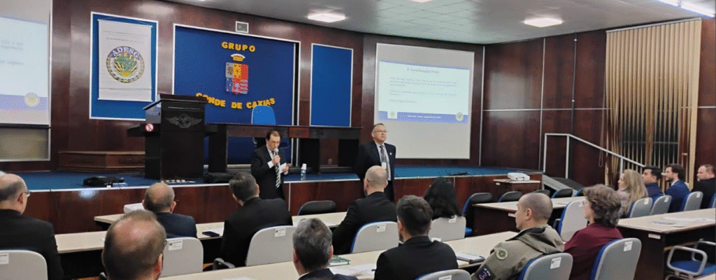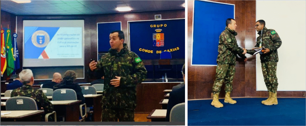 Na programação presencial do XXVII CEPE, no dia 06 de junho de 2025, o seminário foi realizado pelo Ten. Cel. George Koppe Eiriz – Comandante do 3º Grupo de Artilharia Antiaérea – Grupo Conde de Caxias – cujo tem foi “As Reconfigurações do Poder Geopolítico na Europa e as Implicações para a Base Industrial de Defesa da União Europeia”. O Cel Koppe também é Estagiário do CEPE de 2025.
