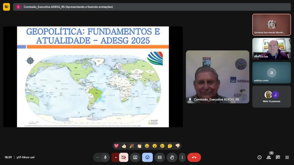 A ADESG/RS deu andamento às palestras no Curso de Estudos de Política e Estratégia – CEPE de Porto Alegre, por vídeo conferências, no mês de julho, com as seguintes palestras: