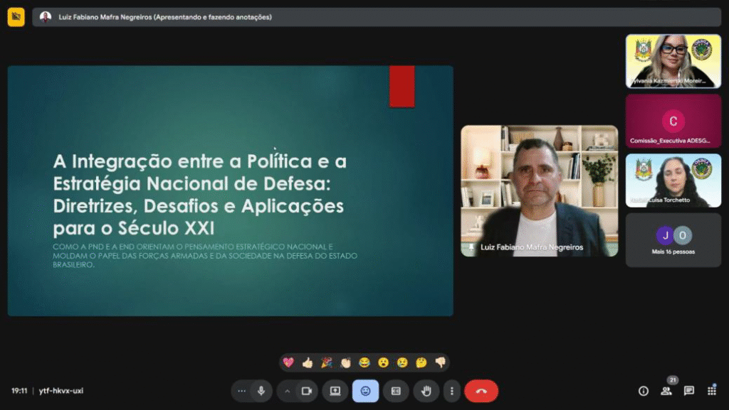 No dia 07 de Jul, sobre “A Integração entre a Política e a Estratégia Nacional de Defesa: Diretrizes, Desafios e Aplicações para o Século XXI”, com o Cel Inf Res Luis Fabiano Mafra Negreiros.