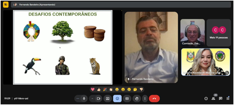 No dia 01 Set, sobre “A Amazônia Legal e as Questões em Roraima e Os Desafios Contemporâneos” com o Gen Bda Res Fernando T. F. Bandeira.