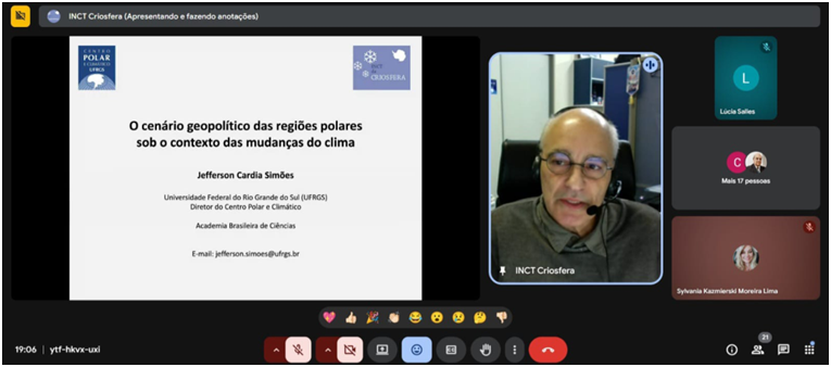 No dia 08 Set, sobre o tema “A Geopolítica das Regiões Polares sob um cenário de mudanças do clima” com o Prof. Jefferson Cardia Simões, docente da UFRGS.
