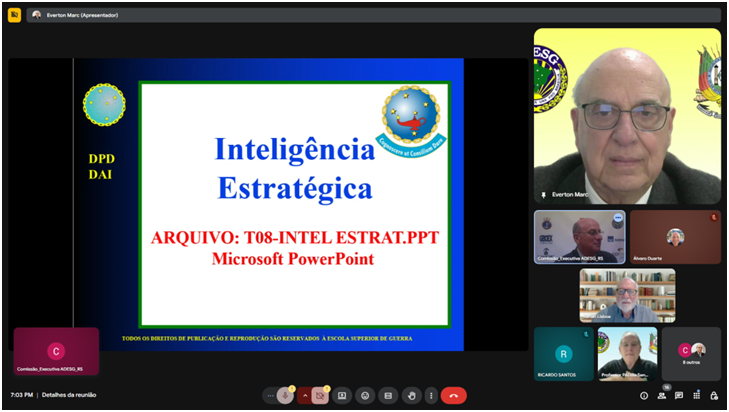 No dia 15 Set. sobre “Inteligência Estratégica” com o Dr. Everton Marc, Delegado da ADESG/RS.