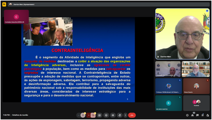 No dia 29 Set, “Contrainteligência Estratégica” com o Dr. Everton Marc, Delegado da ADESG/RS.