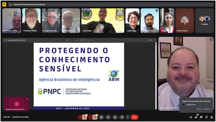 No dia 30 Set, sobre “A ABIN e a Proteção ao Conhecimento Sensível” com o OFI Robertson Frizero Barros.