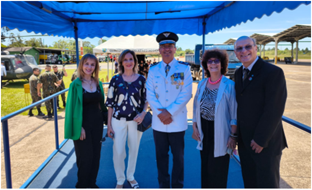 Psic. Lúcia (Dir ADESG/RS), Sra Leonor (filha do Brig Nero Mora – Patrono da Aviação de Caça), Maj Brig Miguel (Cmt do V COMAR), Sra Denise (Presidente da Associação Costurinha), Cel Petry (Vice-Delegado da ADESG/RS).